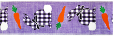 Title: Black/White Checkered Bunnies/Carrots on Lavender Linen, 2.5" X10Y, 1/Rl