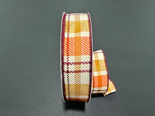 Tan, Orange, Burgundy, Sunflower Fall Plaid, 1.5" x 50yd, 1/rl