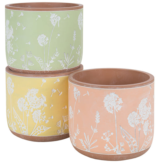 6" Cement Dandelion Embossed Planter, 3 Assorted, 3/pk