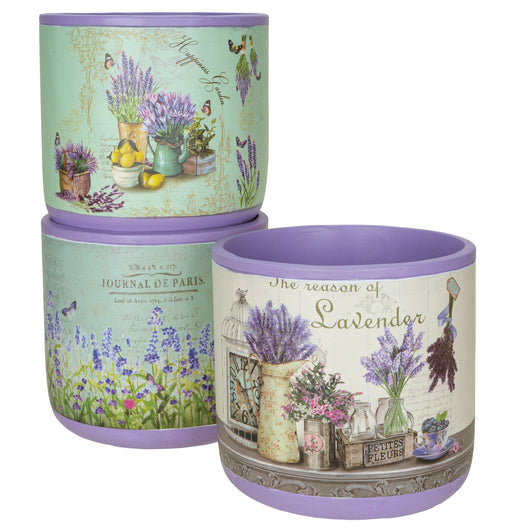 6" Cement Lavender Seasons Planter, 3 Assorted, 3/pk