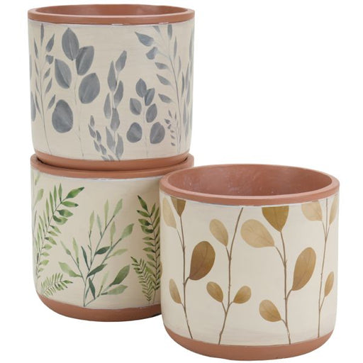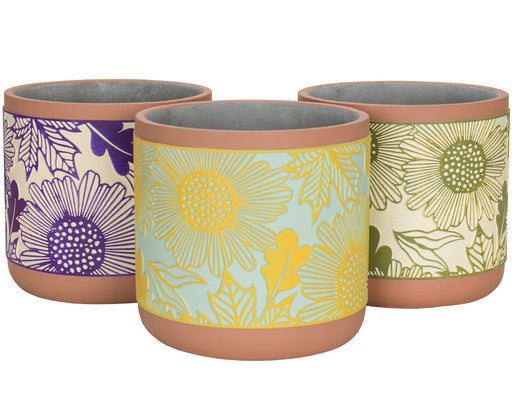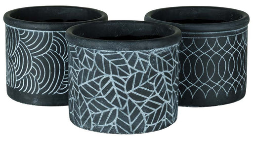 6" Cement Botanical Design Pot, 3 Assorted, 3/pk