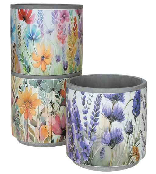 6" Cement Wildflower Planter, 3 Assorted, 3/pk
