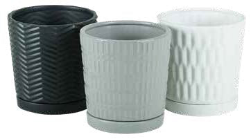 Original price $32.97 - Original price $32.97Original price$32.97$32.97 - $32.97Current price $32.97| /in stock(S109) 3-816PTR/1AC$10.99 Each / 3 Per Pack6" Textured Matte Pottery Planter w/Saucer, Black/White/Gray, 3 Assorted, 3/pk