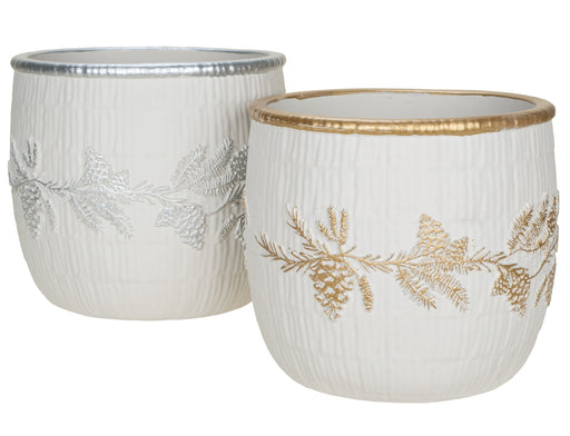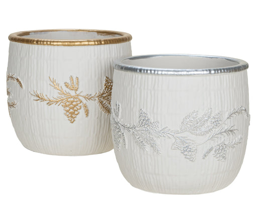 6" Gold/Silver Pinecone Motif Cement Planter, 2 Assorted, 2/pk