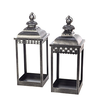 19" Black Metal Lantern, 2 Assorted, 19"H X6.25"W, 2/pk