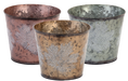 Title: 6.5" Embossed Leaf Metal Potcover, 3 Assorted, 3/pk