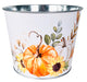 Title: 6" Metal White/Orange Pumpkin Sash Potcover, 1/ea