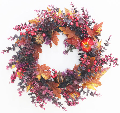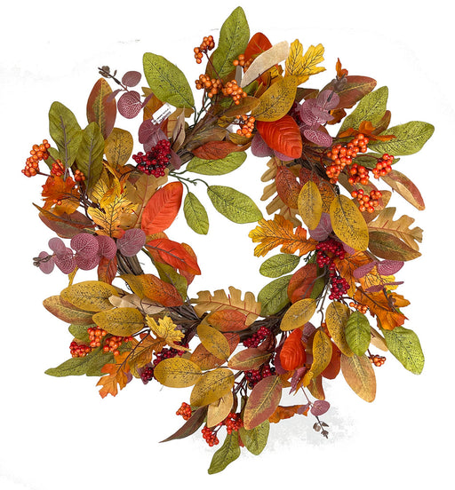 28" Fall Eucalyptus-/Berry-Gourd Wreath, 1/ea