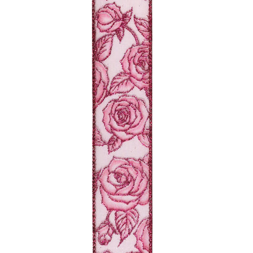 Pink Glitter Roses on Pink Sheer, 1.5" x 50yd, 1/rl