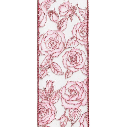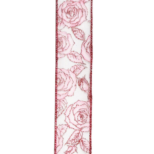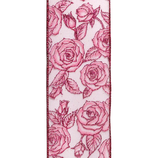 Pink Glitter Roses on Pink Sheer, 2.5" x 50yd, 1/rl