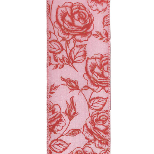 Dusty Red Roses on Pink Satin, 2.5" x 50yd, 1/rl