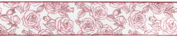 Title: Pink Glitter Roses on Pink Sheer, 2.5" x 50yd, 1/rl