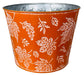 Title: 6" Metal Orange/White Autumn Leaves Potcover, 1/ea