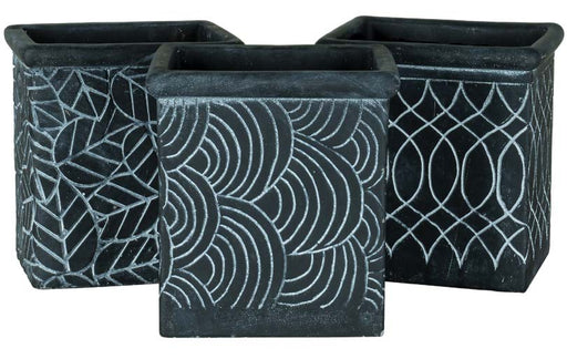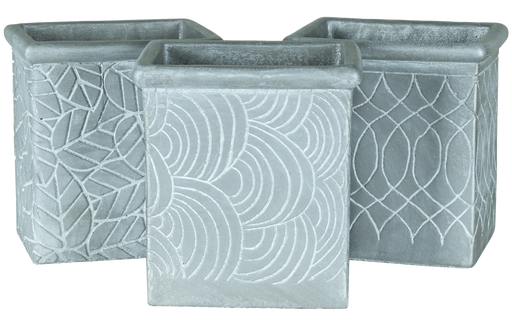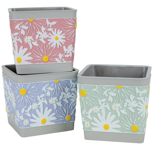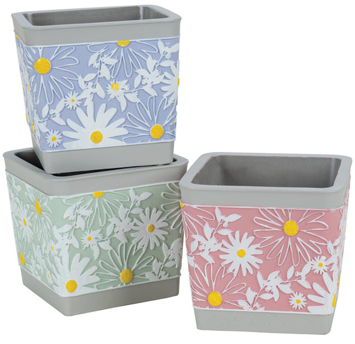 6" Cement Square Daisy Design Planter, 3 Assorted, 3/pk