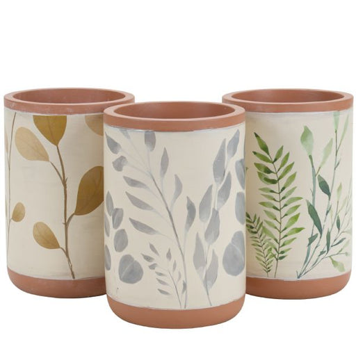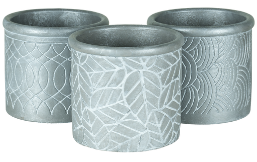 6" Cement Botanical Design Pot, 3 Assorted, 3/pk