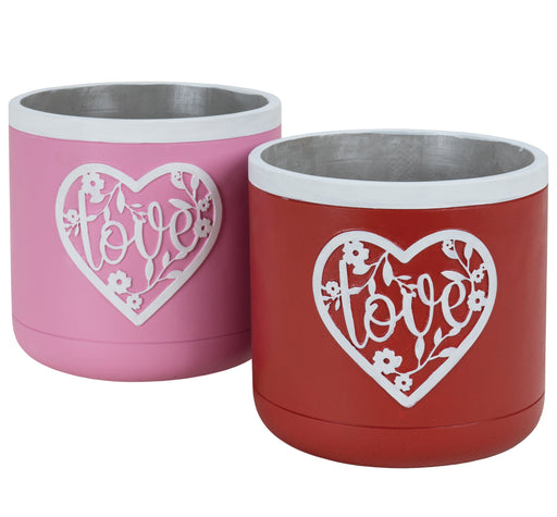 6" Red/Pink Love Heart Design Cement Planter, 2 Assorted, 4/cs
