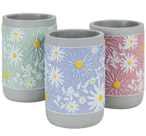 7" Cement Daisy Design Vase, 3 Assorted, 3/pk