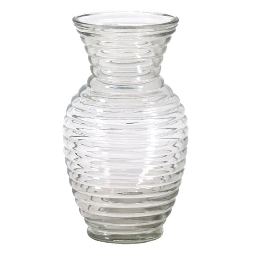 11" Ribbed Clear Glass Vase, Opening: 5", 6/cs