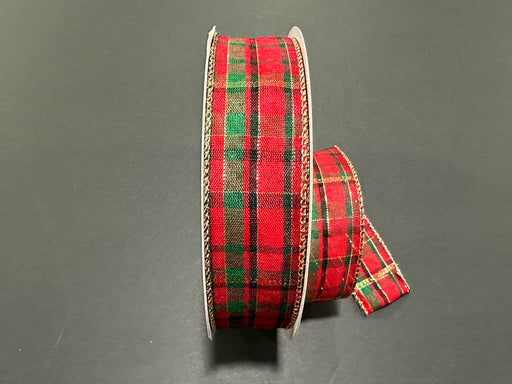 Red, Green & Gold Traditional Plaid, 1.5" x 50yd, 1/rl