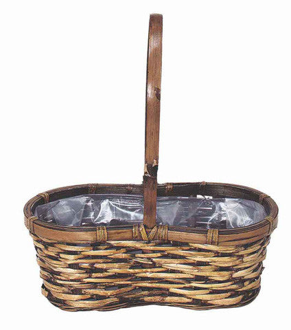 9.5" Peanut Basket with Handle Stained Rattan, Holds Two 4" Pots, 1/ea