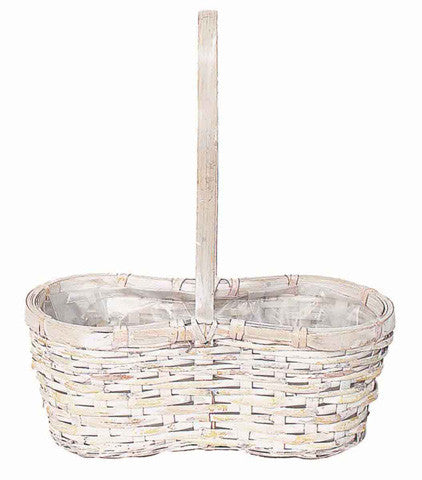9.5" Peanut Basket with Handle White Wash Rattan, Holds Two 4" Pots, 1/ea