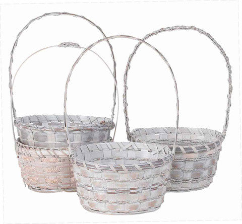 5"-7" White Wash Splitwood Basket with Handle Asst Round/Oval/Rectangle, 12/pkg