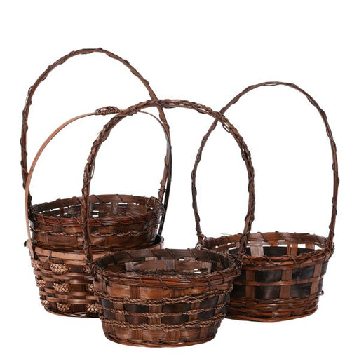 5"-7" Stained Splitwood Basket with Handle Asst Round/Oval/Rectangle 3 Asst, 3/pk