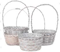 5"-7" White Wash Bamboo Basket with Handle Asst Round/Oval/Rectangle, 12/pk