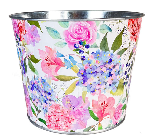 6.5" Flower Watercolor Metal Potcover, 3 Assorted, 3/pk