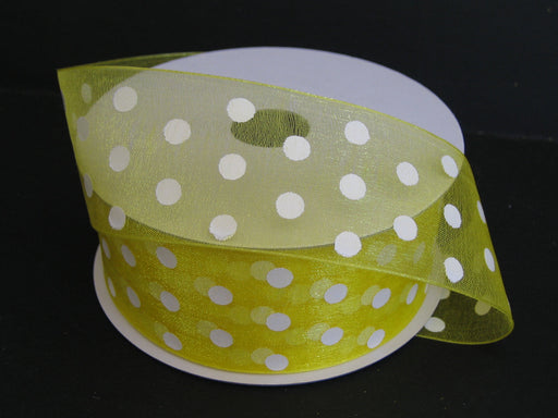 1.5" Daffodil Sheer White Dots, 25yd, 1/rl