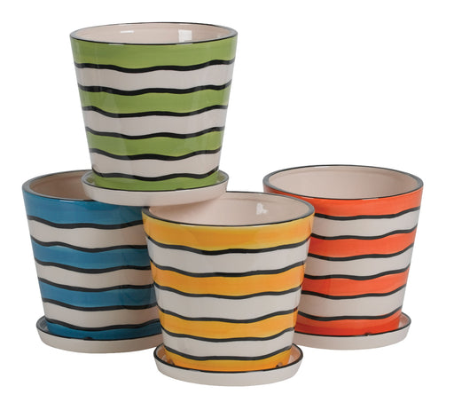 6.5" Summer Stripes Planter w/Saucer, 4 Assorted, 4/cs