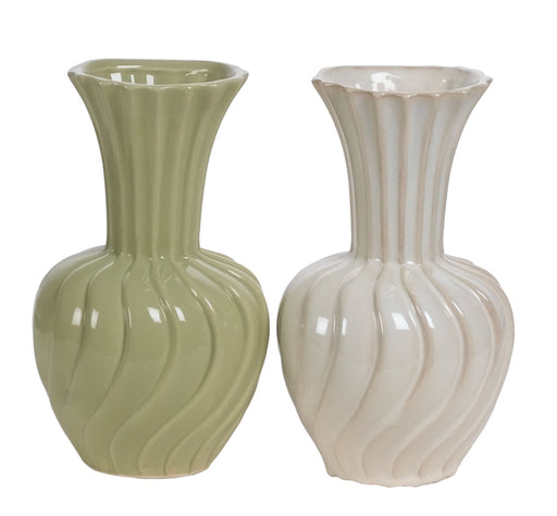9.25" Pottery Turbine Vase, 2 Assorted White & Sage, 2/pk