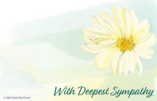 Original price $2.15 - Original price $2.15Original price$2.15$2.15 - $2.15Current price $2.15| /(P729) FC446-SYM$2.15 Pack / 42 Per PackEnclosure Card - With Deepest Sympathy Watercolor Daisy - 3½" x 2¼" - 42/pk