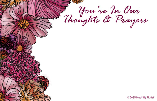 Original price $2.15 - Original price $2.15Original price$2.15$2.15 - $2.15Current price $2.15| /(P732) FC450-SYM$2.15 Pack / 42 Per PackEnclosure Card - Thoughts & Prayers Decorative Flowers - 3½" x 2¼" - 42/pk