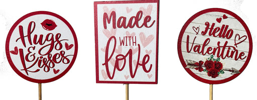 Red & White Wood Valentine Sentiment Pick, 3 Assorted, 12/pk